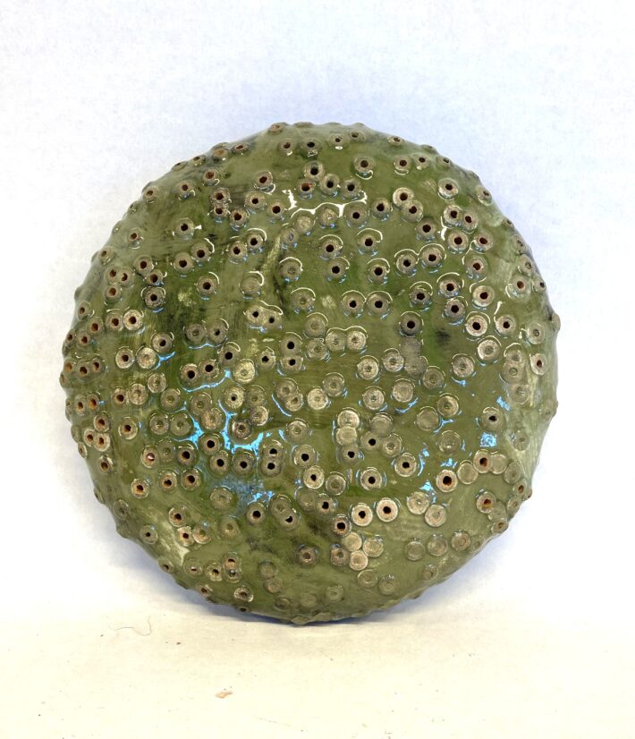 Keramisk veggskulptur. Perforert, dobbel form. Ø: 25 cm