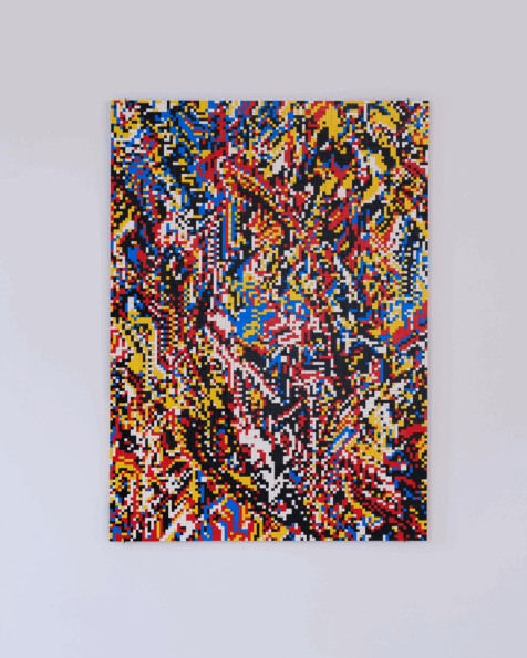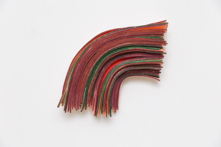 Farget og strimlet ullfilt, montert på plate.