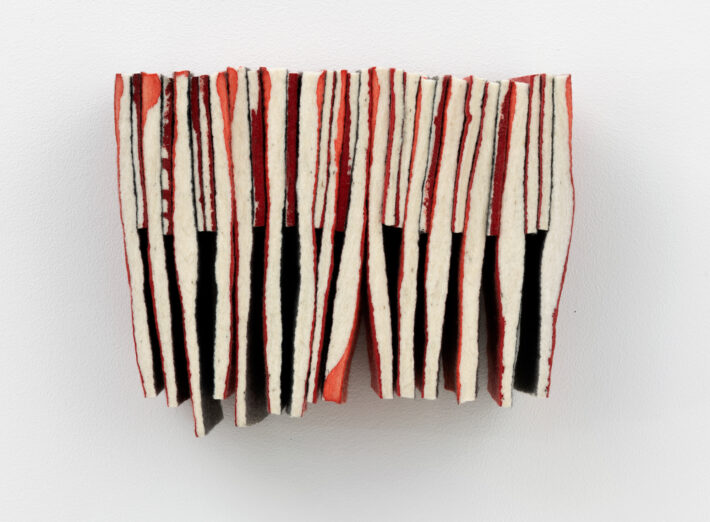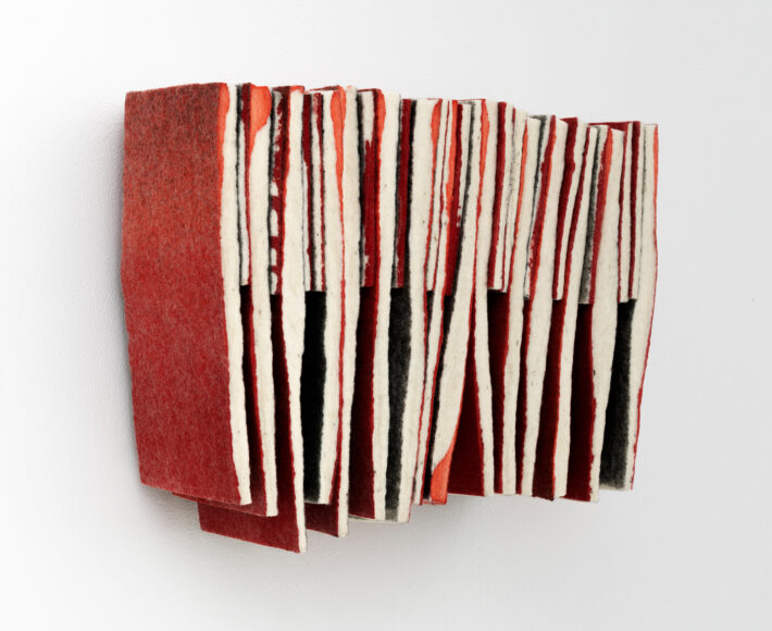 Farget og kuttet ullfilt montert på plate.
